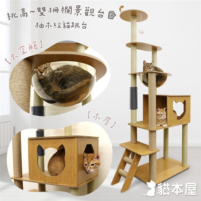 挑高雙柵欄觀景台太空艙貓跳台 附蹭毛柱(175cm)貓主子玩耍樂園原價$4500特價$1280
