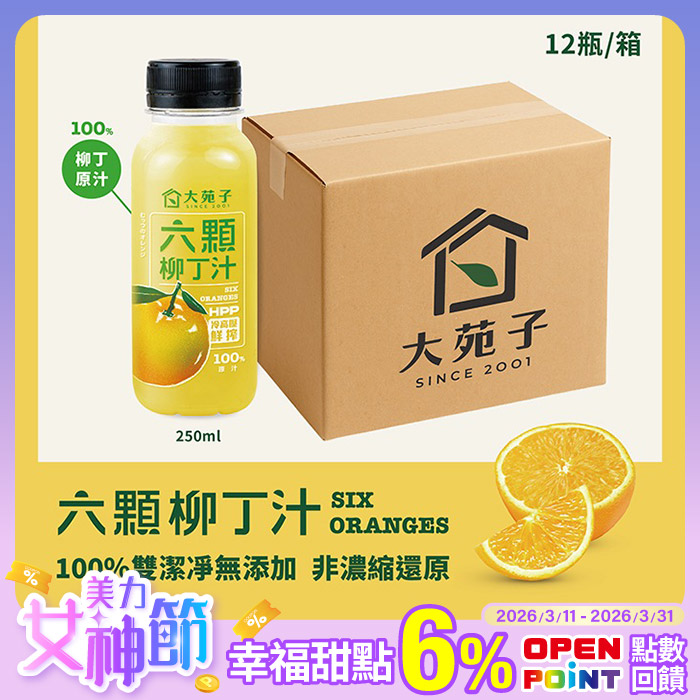 六顆柳丁汁12瓶(250ml/瓶)平均一瓶65元原價$1080特價$780