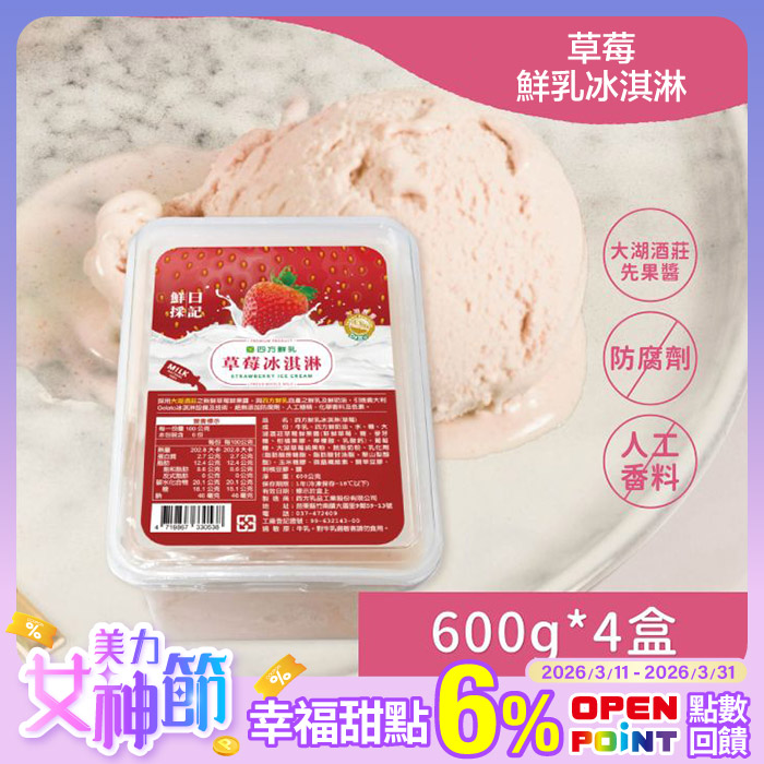 草莓冰淇淋(大)*4盒鮮乳搭配酒莊鮮果醬原價$1980特價$1920