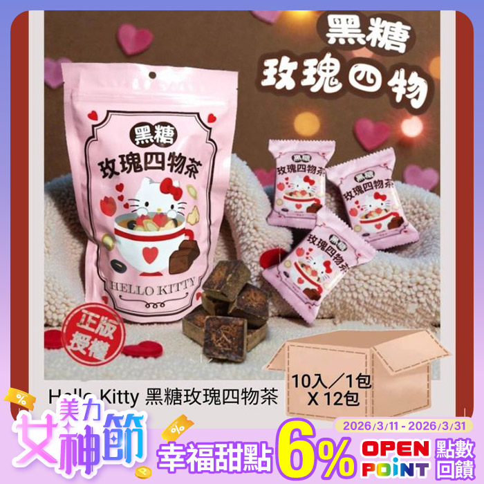 Hello Kitty黑糖玫瑰四物茶10入/包平均每包249元原價$3000特價$2988