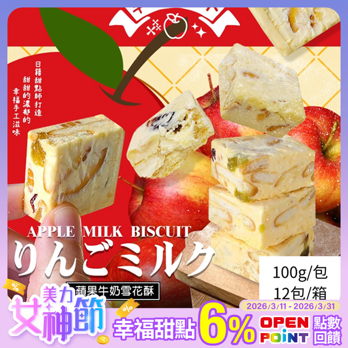 億品鄉-蘋果牛奶雪花酥100g(蛋奶素)/包平均每包109元原價$1428特價$1308