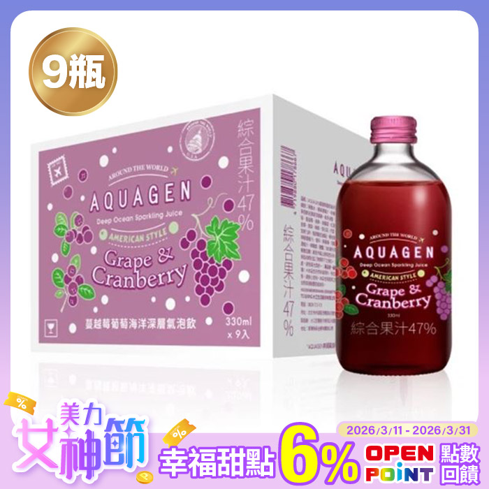 蔓越莓葡萄海洋深層氣泡飲*9瓶香檳級綿密氣泡原價$675特價$540