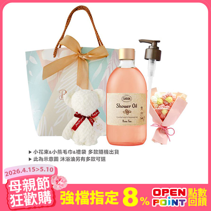 沐浴油香氛組[沐浴油+壓頭+迷你花束+造型毛巾+禮品袋]-任選特惠超值組原價$1,898特價$999