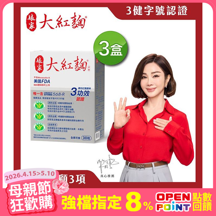 大紅麴 3盒組 (30粒/盒)調節血脂血糖必備原價$7,740特價$6,811