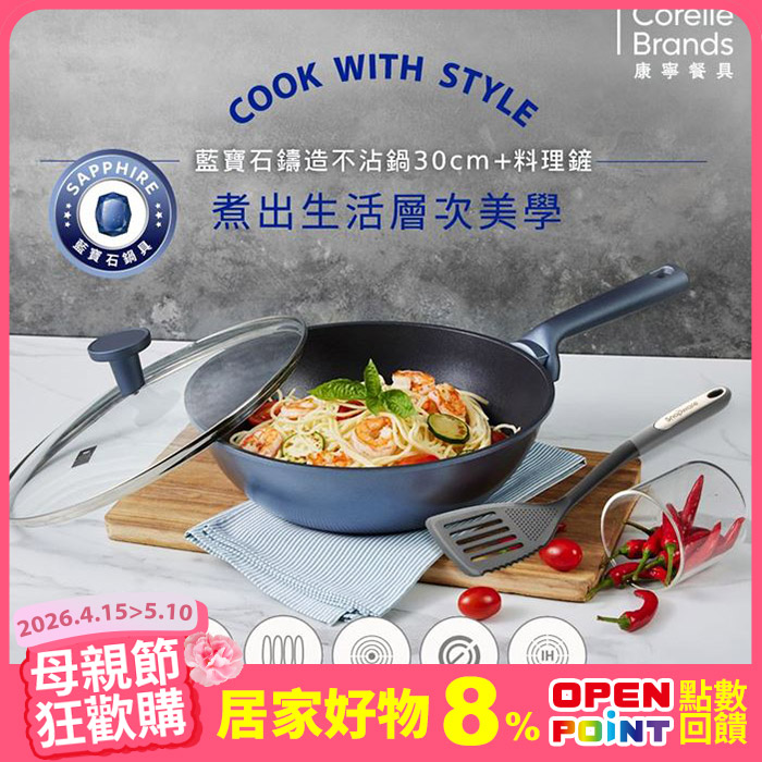 藍寶石鑄造不沾深炒鍋30cm(含蓋)-贈多功能料理鏟重力壓鑄 一體成型原價$2,580特價$999