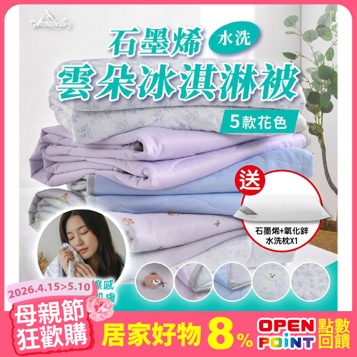 【送石墨烯+氧化鋅水洗枕】石墨烯水洗雲朵冰淇淋被(共5款)送水洗枕原價$1,680特價$618