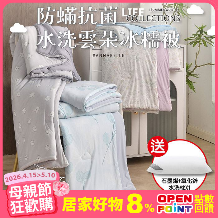 【送石墨烯+氧化鋅水洗枕】防蟎抗菌水洗雲朵冰糯被(共4款)送水洗枕原價$1,880特價$711