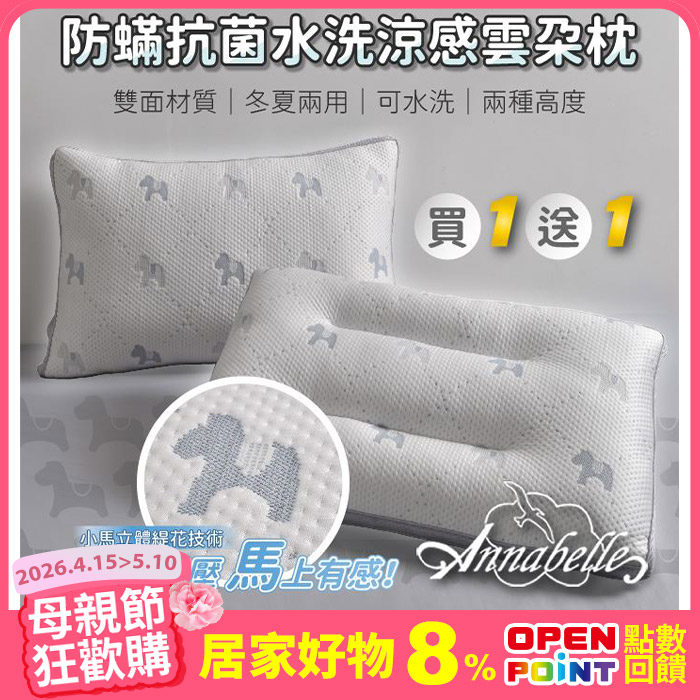 【買1送1】防蟎抗菌水洗涼感雲朵枕買一送一平均$400原價$2,280特價$799