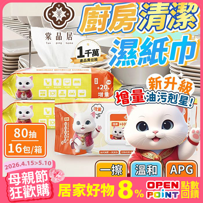 【箱購】廚房清潔濕紙巾(80抽x16包)-檸檬團購熱銷商品原價$784特價$464