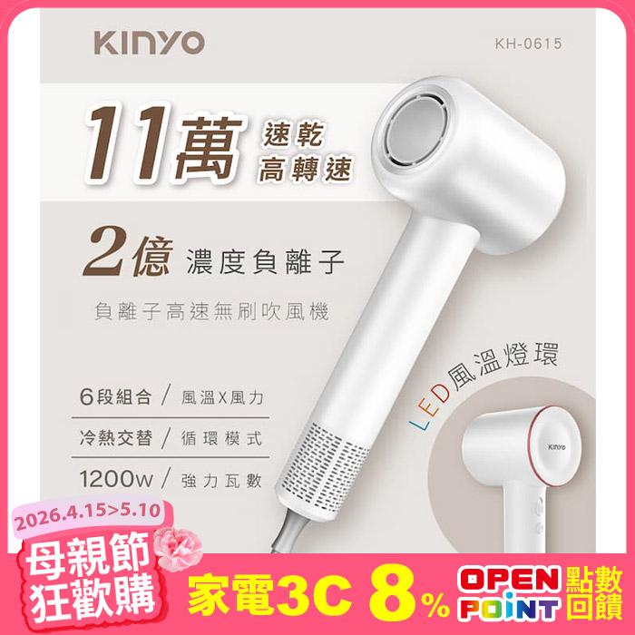 負離子無刷吹風機 KH-0615NTC智慧溫控技術原價$1,980特價$1,099