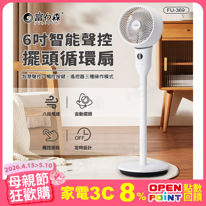 6吋智能聲控3D循環扇智慧聲控、觸控按鍵原價$2,480特價$1,180
