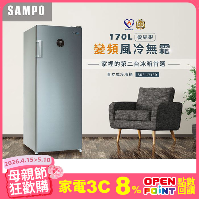 170公升風冷無霜變頻直立式冷凍櫃(SRF-171FD)無霜冷凍原價$17,900特價$14,900