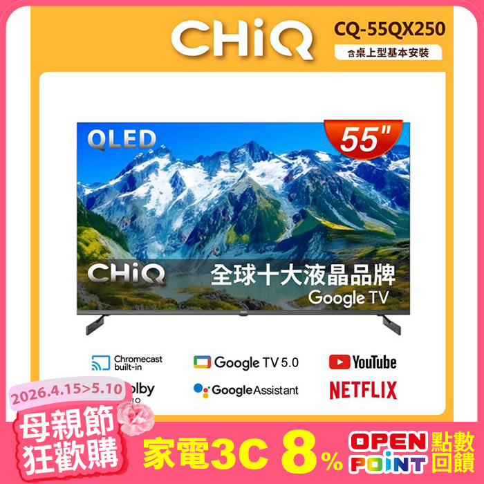 55型4K QLED 智慧聯網液晶顯示器CQ-55QX250原廠三年保固原價$12,990特價$9,990