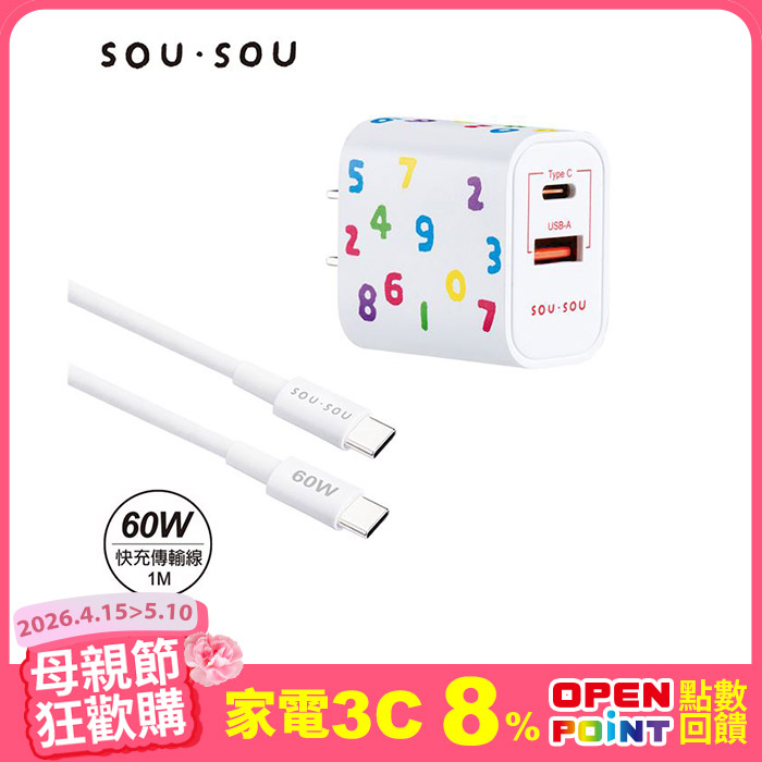 25W氮化鎵GaN 1A1C + 60W C to C 快充傳輸線組全球電壓適用原價$790特價$590