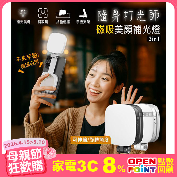 磁吸式美顏3合1補光燈補光美膚 磁吸貼合原價$799特價$590