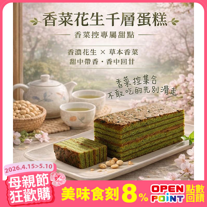香菜花生千層蛋糕6條(160g/條)媽媽最愛 平均299元/條原價$2,120特價$1,794