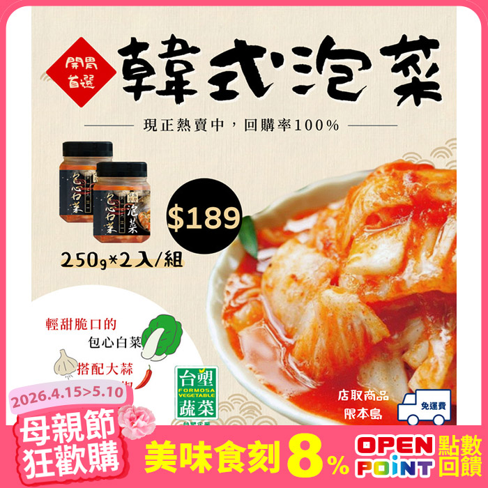 韓式包心白菜泡菜250g*2罐/組一口入魂 寵媽剛剛好原價$199特價$189