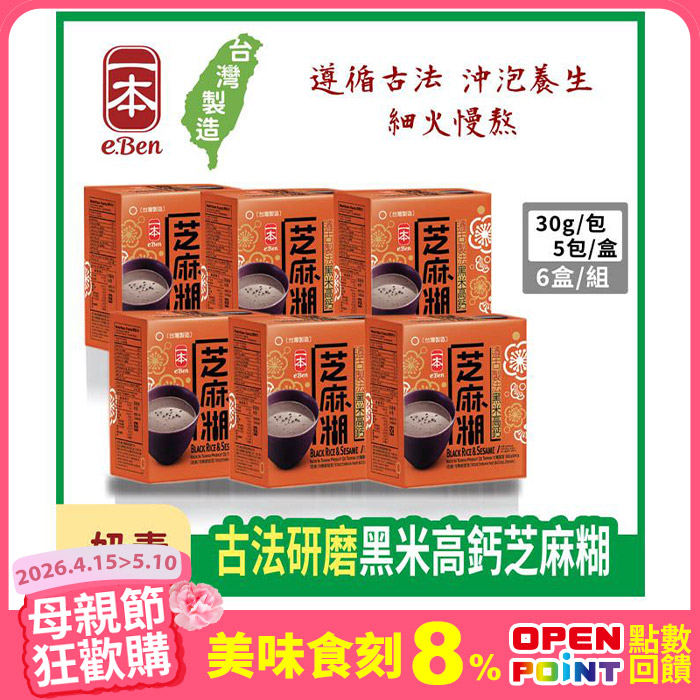 一本高鈣黑芝麻糊30g -(5入/盒)平均每盒75元原價$540特價$450