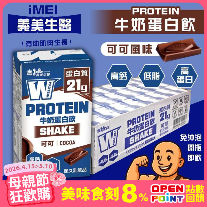 即飲牛奶蛋白飲-可可風味x2箱(250毫升X24入)免沖開瓶即飲原價$2,999特價$2,400