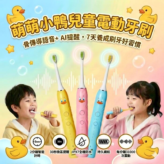 兒童電動牙刷[1台]-3色可選(黃、藍、粉)骨傳導黑科技 媽放心原價$2,280特價$1,180