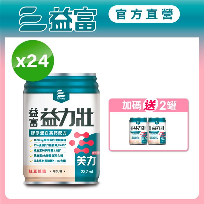 益力壯美力膠原蛋白高鈣配方-紅豆低糖 237ml*24入買箱贈罐好划算原價$1,750特價$1,550