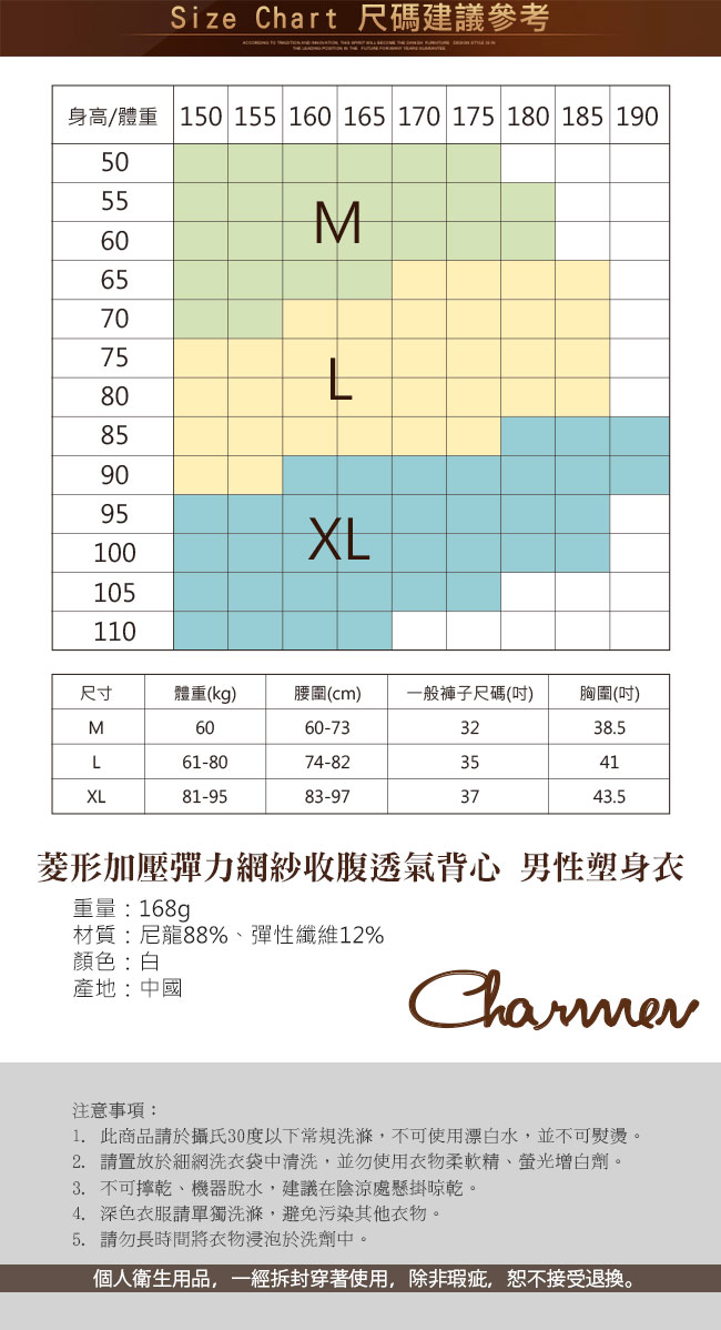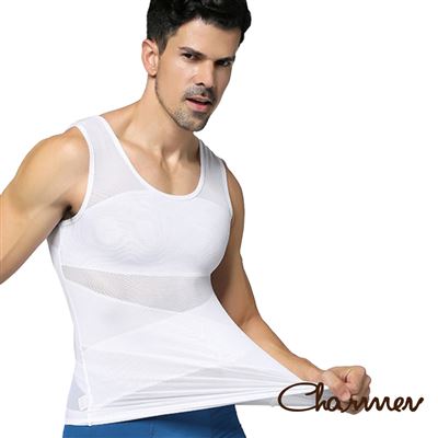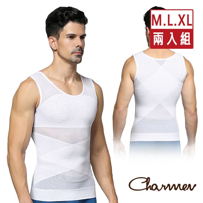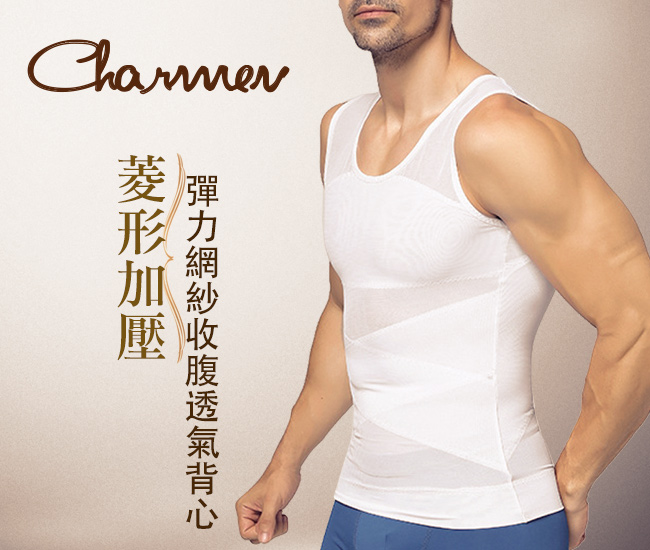 | 【商品名稱或型號】 | 【Charmen】菱形加壓彈力網紗收腹透氣背心 男性塑身衣 白色 2入 |