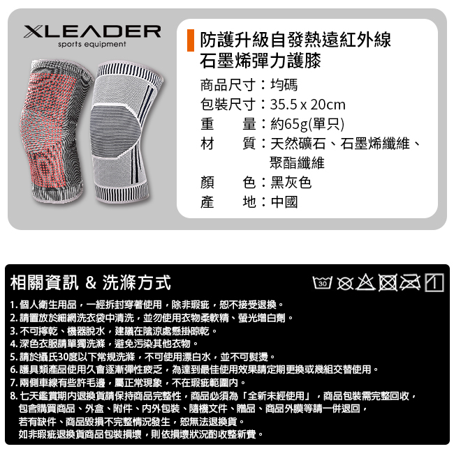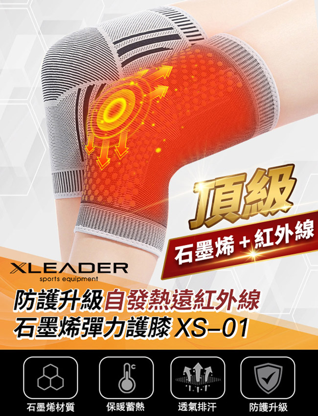 | 【商品名稱或型號】 | 【Leader X】XS-01防護升級自發熱遠紅外線石墨烯彈力護膝 兩只入 |