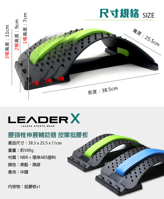 | 【商品名稱/型號】 | 【Leader X】腰頸部伸展輔助器 按摩挺腰板(兩色任選) |