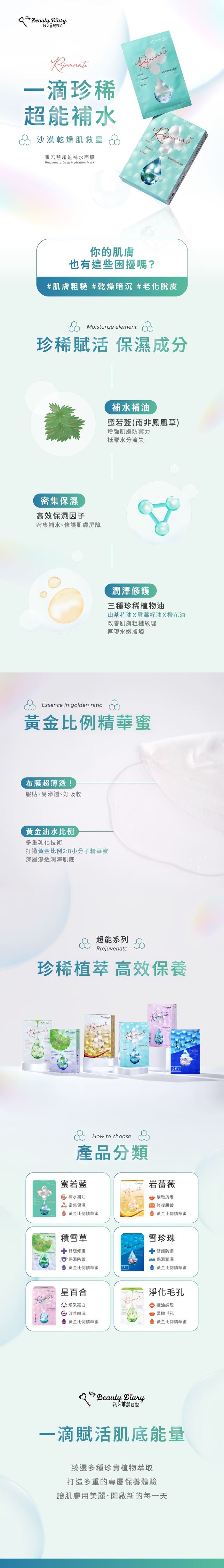| 商品名稱/包裝內容規格 | 【我的美麗日記】蜜若藍超能補水面膜 [5入/盒] | |