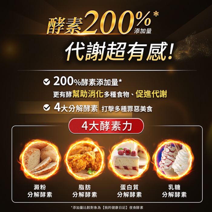 宵夜、大餐、飲食管理的代謝應援200%酵素添加量