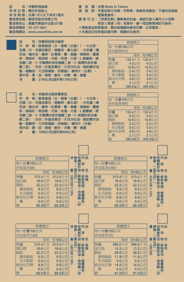 | 商品名稱 | 嘉義林聰明-沙鍋菜湯底2包(2100g) |
