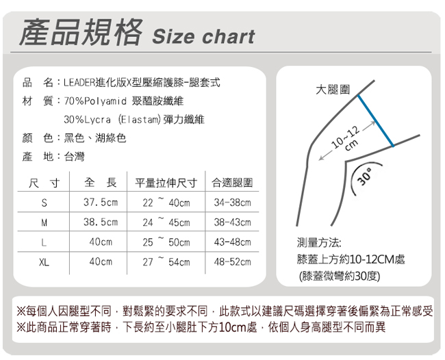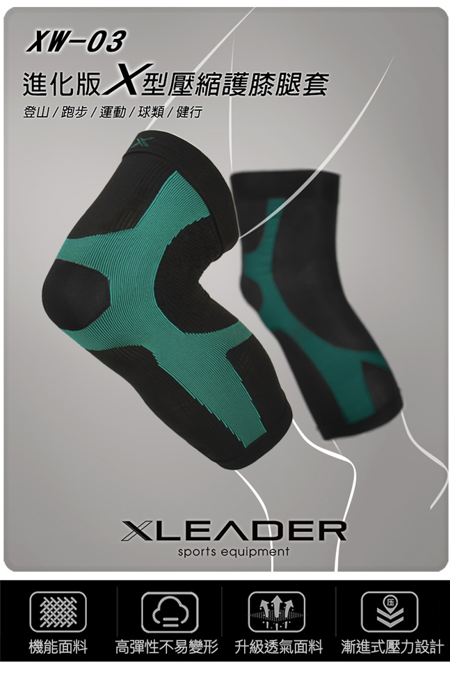 | 【商品名稱或型號】 | 【Leader X】XW-03進化版X型運動壓縮護膝腿套 1只入 黑色XL |