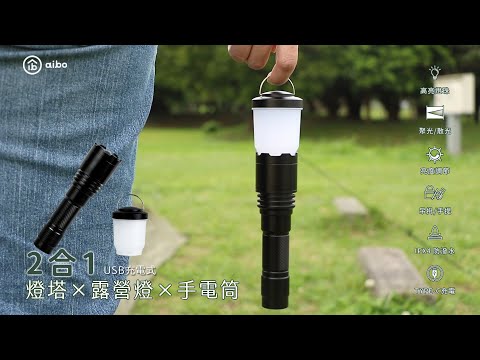 .商品名稱:aibo USB充電式 二合一燈塔露營燈手電筒(LI-62)