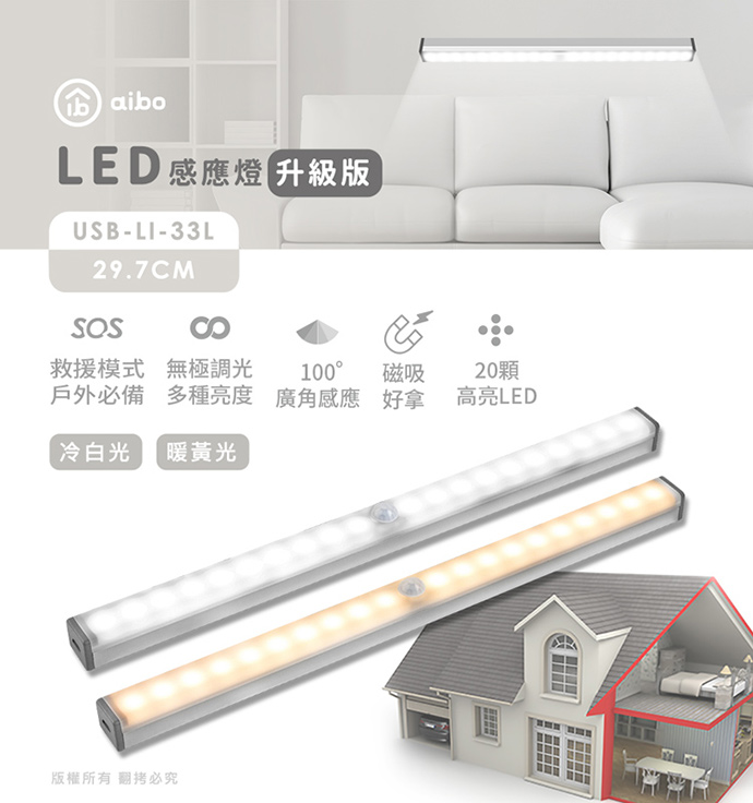 (2入組)aibo 升級版多功能 USB充電磁吸式 29.7cmLED感應燈管(LI-33L)
