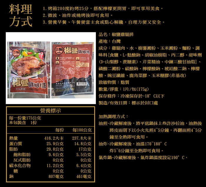 | 原產地 | 椒鹽雞腿排(台灣) |