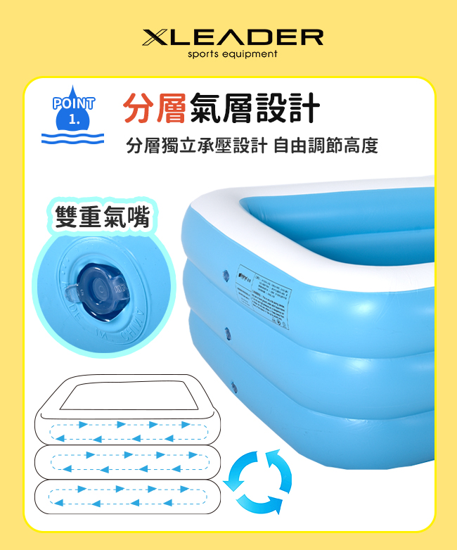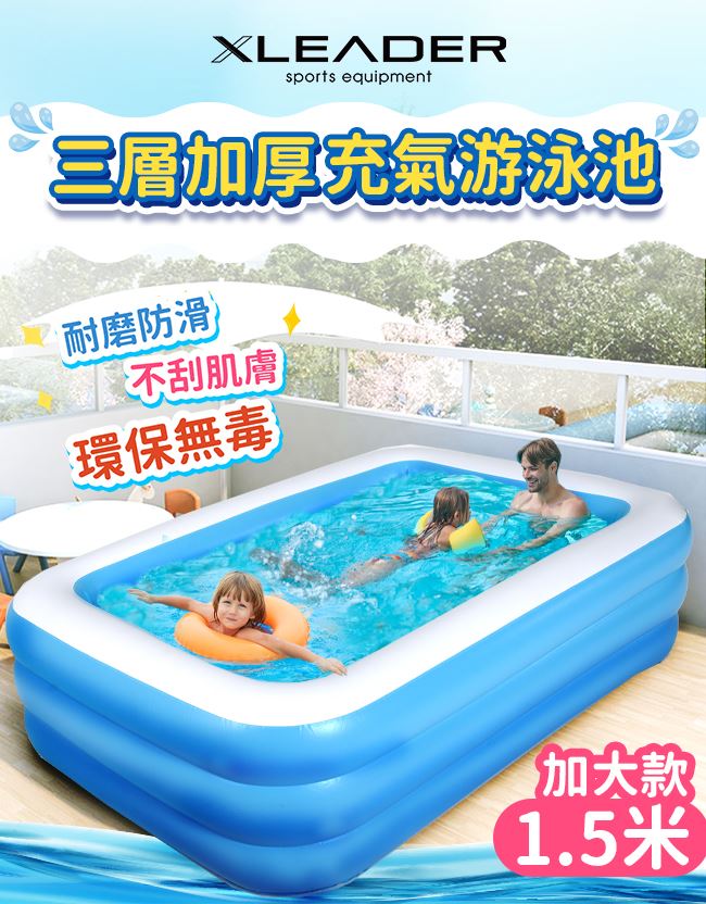 【商品名稱】【Leader X】三層加厚充氣游泳池 1.5米 加大加厚款