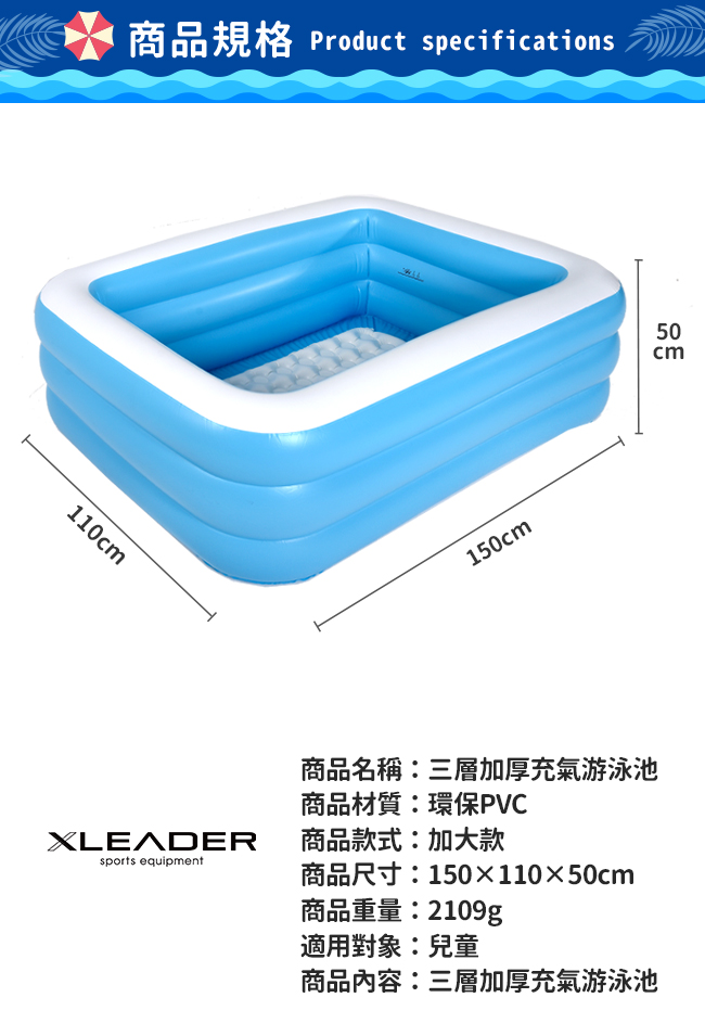 | 【商品名稱或型號】 | 【Leader X】三層加厚充氣游泳池 1.5米 加大加厚款 |