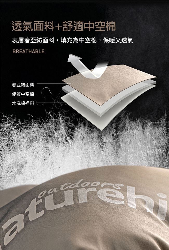 優質中空棉,舒適保暖不易變形