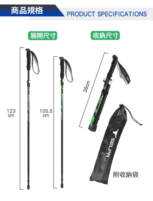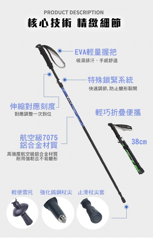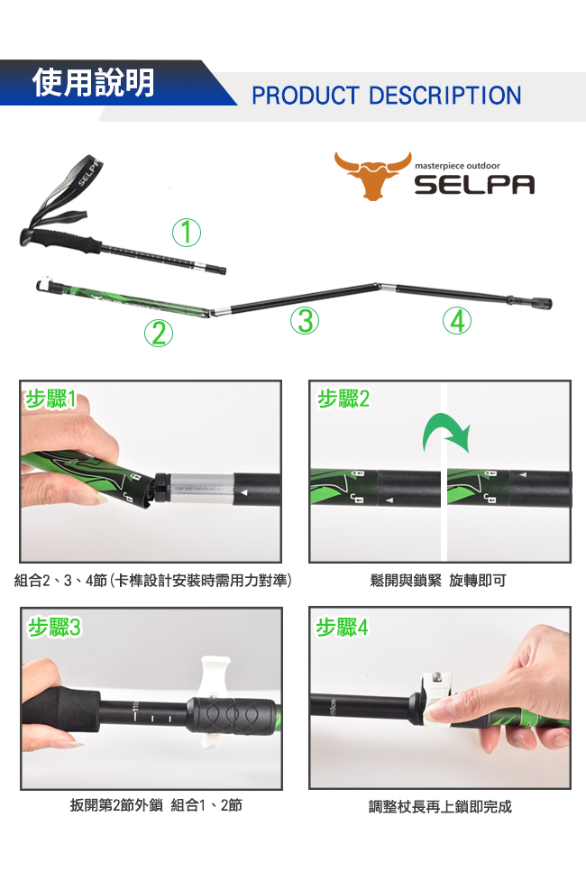 | 【商品名稱或型號】 | 【韓國SELPA】翔凰7075鋁合金折疊四節外鎖快扣登山杖 單入(綠色) |