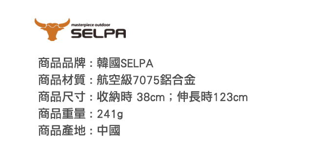 | 【尺寸】 | 收納時38cm,伸長123cm |