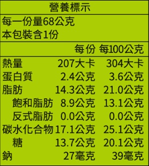 | 包裝內容/商品規格 | 68公克x20入/箱購 |