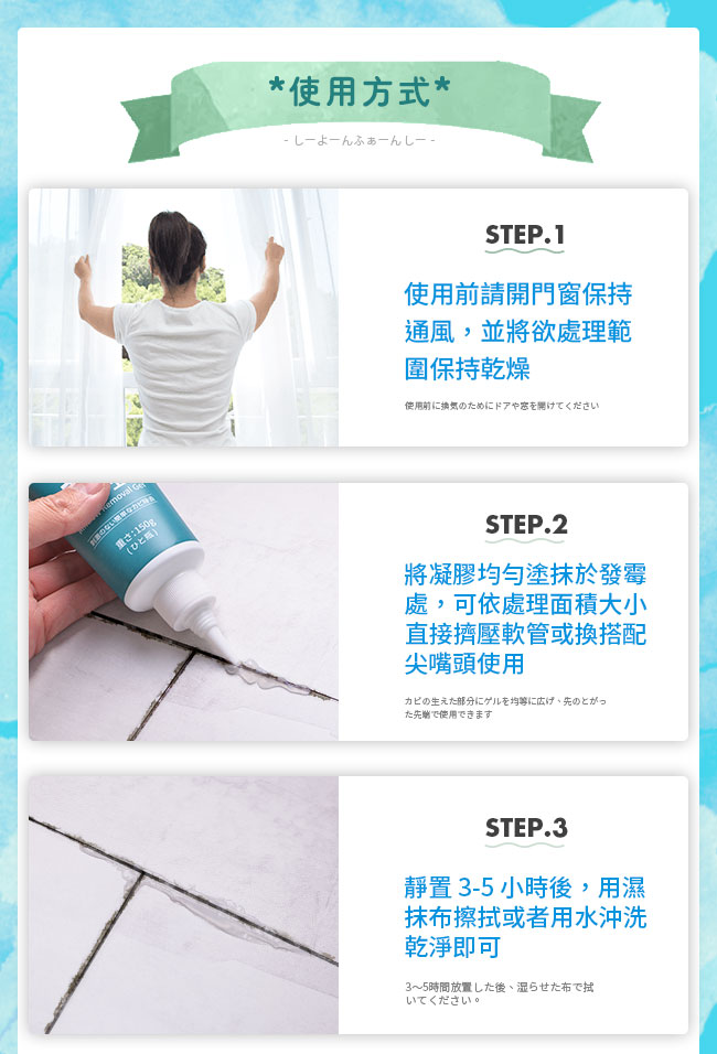 使用超簡單,塗抹後等待3-5小時輕鬆除霉