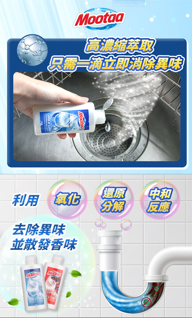 | 商品名稱 | 【Mootaa歐洲原裝進口】一滴香浴廁管道去味除臭劑125ml (海洋香) |