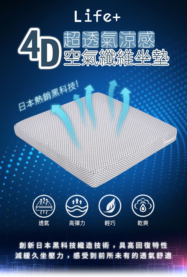 | 商品名稱 | Life+ 超透氣涼感4D空氣纖維坐墊 (曜石藍) |