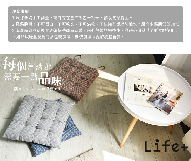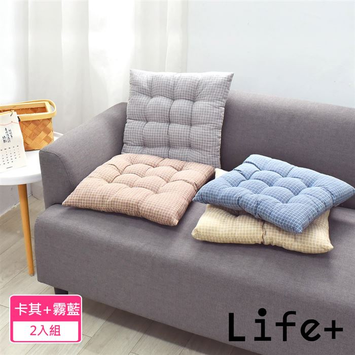 | 商品名稱 | Life+ 日系無印風 棉麻格紋透氣坐墊/椅墊 2入組(卡其+霧藍) |