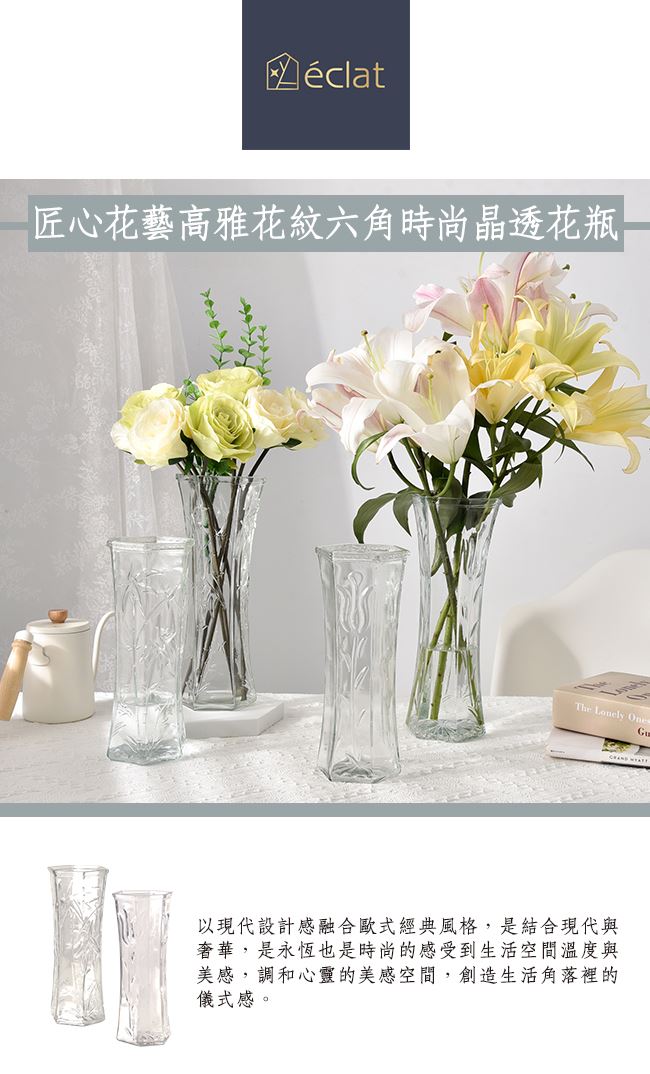 | 商品名稱 | éclat 匠心花藝高雅花紋六角時尚晶透花瓶_大款(2款任選) |