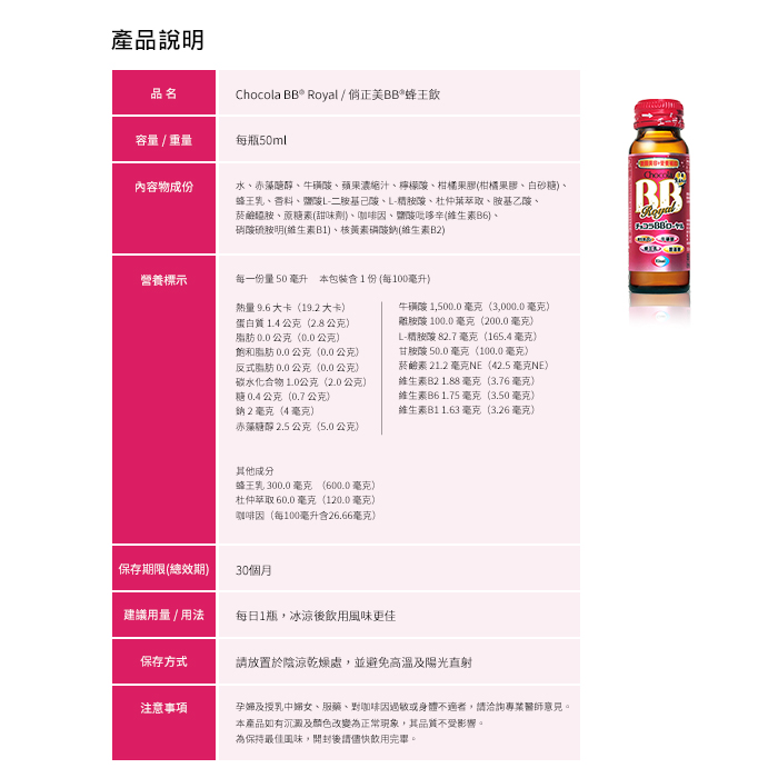 | 商品名稱 | Chocola BB 蜂王飲 |