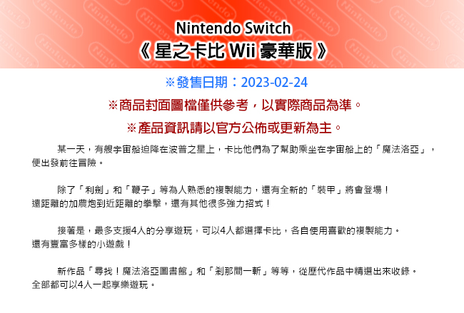 | 商品名稱 | NS 星之卡比 Wii 豪華版 中文版 |