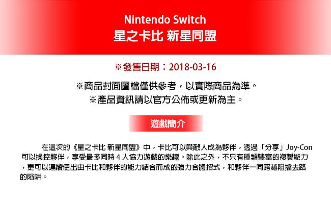 | 商品名稱 | NS 星之卡比 新星同盟 中文版 |
