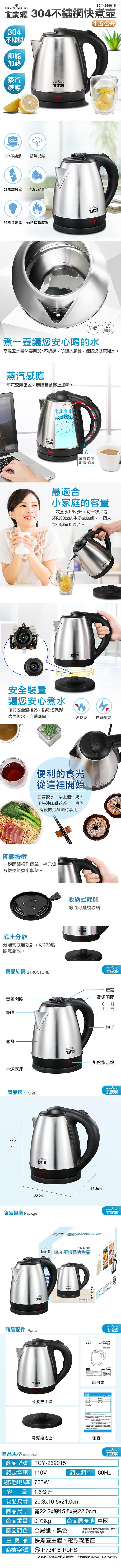 大家源 1.5L 304不鏽鋼快煮壺 TCY-269015